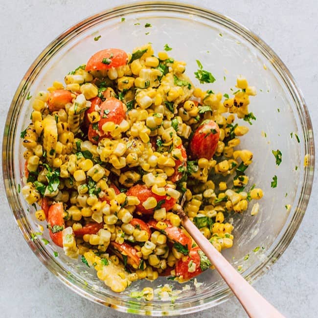 Fresh corn and tomatoes in the best Dijon mustard dressing.